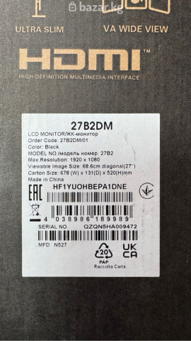 Диагональ: 27 дюймов, тонкие рамки по периметру - Разрешение: Full HD 1920×1080 (типично для этой серии — четкая картинка для работы, учебы и мультимедиа) - Матрица: без бликов, комфортна для длительной работы - Частота обновления: 60 Гц - Соотношение сторон: 16:9 - Встроенные динамики (решетки по бокам задней панели) Подключения: - HDMI (полноразмерный) - DVI-D - D-Sub (VGA) - Аудиовход 3,5 мм для динамиков - Разъем питания на задней панели Эргономика: - Устойчивая подставка, наклон экрана регулируется - Удобный доступ ко всем портам Подходит для офисных задач, домашней работы, просмотра фильмов и консоли/ПК через HDMI. Компактные рамки экономят место на столе и дают больше полезной площади экрана.