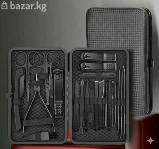 - Комплектация: ножницы (несколько типов), кусачки и щипчики для ногтей/кутикулы, пинцет, пилочки, пушеры и ложечки, шаберы, лопаточки для кутикулы, триммеры, нож для обработки огрубевшей кожи, инструменты для коррекции и чистки ногтей, набор тонких инструментов для дизайна/ухода, щеточка и аксессуары. - Все предметы выполнены в едином матово‑черном исполнении, закреплены в эластичных держателях. - Корпус-футляр: жесткий, закрывается на молнию, с фактурным покрытием; внутренние стенки с противоскользящим покрытием. - Подходит для домашнего ухода и профессионального использования: обработка ногтей рук и ног, удаление кутикулы, моделирование формы, гигиеническая чистка, полировка и мелкий дизайн. - Компактная организация — удобно хранить и брать в дорогу; каждый инструмент имеет свое место.