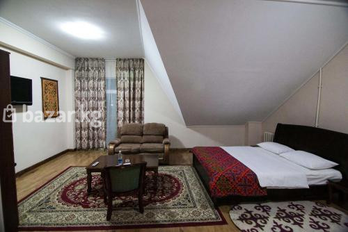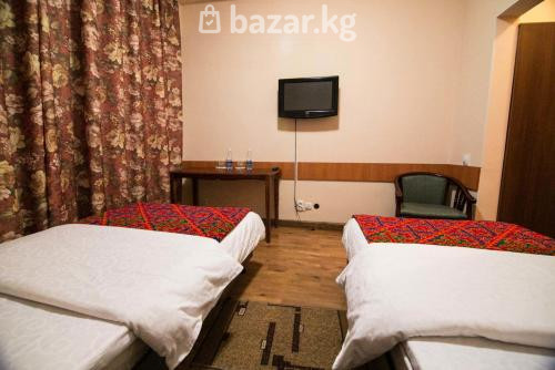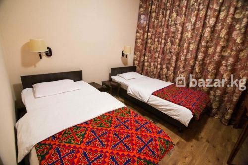 ОТЕЛЬ ТАГАЙТАЙ КАРАКОЛ К Вашему удобству 16 номеров на 36 человек. Каждый номер обеспечен горячей водой, душевой кабиной, туалетом, бесплатным Wi-Fi и спутниковым телевидением. Кроме того, в нашем Отеле имеются сауна, массажный кабинет, уютное кафе Отель «Тагайтай» предлагает Вам конференц–зал на 50 человек. Включает: - audio conferencing - desk top с доступом в Интернет Оборудование конференц-зала: Проектор / Дисплей / Флип-чат доска / Интернет Услуги: - Кедровая фитобочка, сауна - Профессиональный массаж - Аренда горнолыжного снаряжения у партнёров с 5% скидкой - Услуги лыжной комнаты - Трансфер из Бишкека в Каракол, от отеля до горнолыжной базы Наши преимущества: - Удобное расположение Отель "Тагайтай" находится в тихом, уютном месте в самом центре города Каракол, недалеко от городской площади и Иссык-Кульского Государственного Университета, в 20 минутах езды от горнолыжной базы Каракол. - Зеленая энергия В отеле используется энергия только из возобновляемых источников. - Номерной фонд Оформление всех номеров отеля "Тагайтай" выполнено в современном стиле, а номера "Улучшенный комфорт" отражают национальный колорит страны - спокойные и теплые тона. - Домашний комфорт Наш персонал и сервис создают атмосферу домашнего уюта и комфорта для каждого нашего гостя - Качественный сервис Идеально подходит для проживания людей, ценящих комфорт, надежность, доступность новейших технологий в номерах и вкусную кухню - Отличные цены Отель “Тагайтай” - это разумный компромисс между ценой, комфортом и хорошим качеством обслуживания Номера: - Одноместный - Двухместный - Улучшенный комфорт Телефон: +996 550 454 034 Whatsapp +996 505 454 034 +996 772 545 235 Кыргызстан, г. Каракол, ул. Тыныстанова 29A