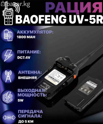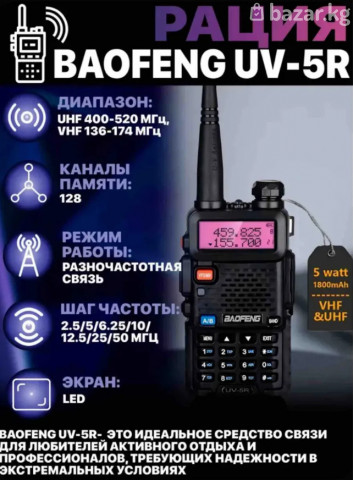 Характеристики Диапазон частот: VHF (136–174 МГц) и UHF (400–520 МГц). Мощность передатчика: в стандартной версии — до 5 Вт, в расширенной — 8 Вт. Мощность аудиовыхода: 500 мВт. Максимальная дальность связи: до 4 километров в условиях высотной застройки, до 10 километров на открытой местности. Аккумулятор: ёмкостью 1800 мАч, позволяет радиостанции работать до 12 часов без подзарядки. Влагозащита: IP54. Рабочая температура: от -20 до +60 °С. Размеры: 58×110×32 мм. Вес: 250 г. Комплектация В комплект радиостанции Baofeng UV-5R могут входить: радиостанция; аккумуляторная батарея 1800 мАч; антенна; клипса; шнурок для ношения; зарядное устройство; инструкция. #рация #радиостанция #портативнаярация #рации #связь #радиосвязь #двухсторонняясвязь #walkietalkie #рациядляработы #рациядляохоты #рациядлярыбалки #рациядлятуризма #рациядляпохода #активныйотдых #туризм #поход #выживание #экстреннаясвязь #связьвгорах #связьнабезсети #дальняясвязь #дальнобойнаярация #портативнаясвязь #гаджеты #техника #дляохраны #длястроителей #длясклада #дляработы #переговоры #мощнаярация