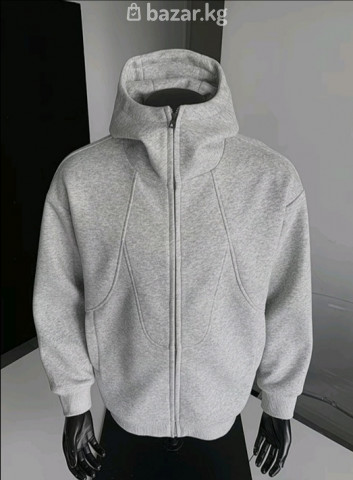 - Цвет: светло‑серый меланж - Крой: свободный, слегка объемный силуэт - Застежка: центральная молния по всей длине - Воротник: высокий стойка-капюшон‑стайл для дополнительного утепления шеи - Манжеты и нижний край: эластичные трикотажные резинки - Декор: фигурные декоративные прострочки спереди, создающие контурные линии - Карманы: скрытые боковые (по линиям прострочки) - Материал: плотный трикотаж (футер/флис на изнанке) — мягкий и теплый, держит форму - Подходит для: повседневной носки, прогулок, тренировок и поездок - Сочетается с: джинсами, спортивными штанами, карго; базовые кроссовки или ботинки Лаконичный дизайн без принтов, акцент на фактуру и посадку. Отличный вариант для многослойных образов и межсезонья