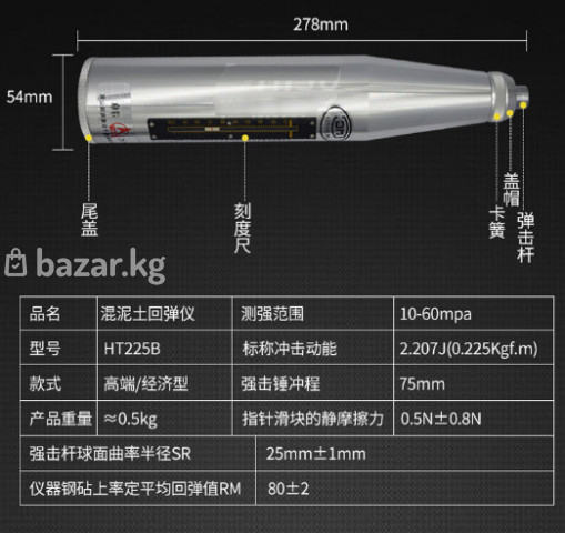 Назначение: - Неразрушающий контроль прочности бетона и железобетона методом отскока. - Подходит для лабораторных и полевых испытаний, оценки однородности и контроля качества монолитных и сборных конструкций. Ключевые характеристики: - Диапазон измерения прочности: 10–60 МПа. - Номинальная энергия удара: 2.207 Дж (0.225 kgf·m). - Ход ударника: 75 мм. - Сила трения ползунка индикатора: 0.5 Н ± 0.8 Н. - Радиус сферической поверхности ударного стержня SR: 25 мм ± 1 мм. - Среднее значение отскока на стальной наковальне RM: 80 ± 2. - Масса прибора: около 0.5 кг. - Габариты корпуса: длина 278 мм, диаметр 54 мм. Конструкция и удобство: - Алюминиевый корпус с продольной шкалой и таблицей пересчёта. - Надёжный фиксатор колпачка, ударный стержень с направляющей. - Чёткая считываемость показаний. Комплектация: - Склерометр HT225B. - Стальная наковальня/калибровочный брусок (оранжевый). - Руководство и документация. - Жёсткий пластиковый кейс для переноски и хранения. #склерометр #молотокшмидта #измерениепрочности #бетон #контролькачества #строительство #строительныйинструмент #проверкабетона #прочностьбетона #испытаниебетона #инженер #строитель #диагностика #неразрушающийконтроль #нк #тестирование #строительныетехнологии #обследованиезданий #ремонт #стройка #инструмент #профинструмент #оборудование #техническийконтроль #качествостроительства #монолит #железобетон #лаборатория #стройэкспертиза
