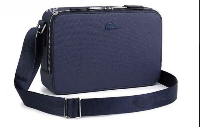 -Компактный прямоугольный формат для ежедневного использования - Жесткая форма, надежно держит содержимое - Плотный текстиль/канва с мелкой фактурой, тон в тон логотип‑крокодил на фронтальной панели - Две отдельные молнии с металлическими бегунками для удобного доступа - Регулируемый широкий ремень с тисненым фирменным рисунком, возможность носить на плече или кроссбоди - Усиленные углы и аккуратная окантовка - Подходит для смартфона, кошелька, ключей, документов формата паспорта/А6 и мелочей - Нейтральный минималистичный дизайн, сочетается с повседневными и спортивными образами