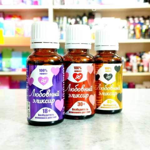 Возбуждающие капли «Любовный эликсир»: Эта серия натуральных стимуляторов разработана специально для усиления либидо и повышения чувствительности, предлагая три формулы (18+, 30+, 45+) для разных возрастных потребностей. Капли обладают быстрым эффектом, способствуя мощному притоку крови к эрогенным зонам и делая ощущения более яркими и глубокими.