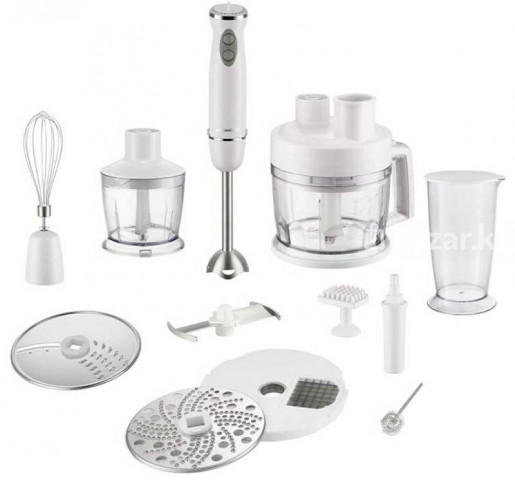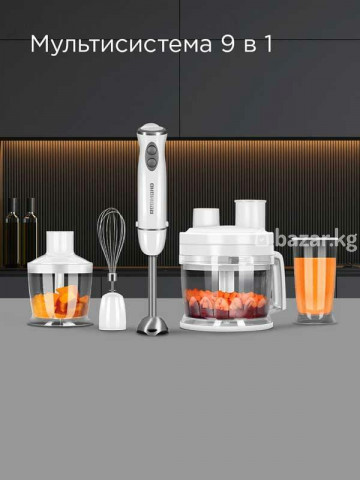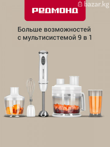Блендер РЕДМОНД BH407 — мощное устройство для тех, кто хочет сделать домашние дела проще, быстрее и даже приятнее. Блендер пригодится, если вы делаете заготовки на зиму, готовите на большую семью или просто проводите много времени на кухне. У него 9 сменных насадок, стакан для смешивания на 700 мл. Общие характеристики Тип погружной Цвет белый Тип управления механический Номинальная мощность 1000 Вт Максимальная мощность 1500 Вт Материал корпуса пластик Скорость работы в основном режиме 9000 - 12800 об/мин Режим турбо есть Скорость работы в турборежиме 15000 об/мин Скорости работы плавная регулировка скорости Чаша измельчителя большая/малая Мерный стакан есть Материал погружной части нержавеющая сталь Объем чаши измельчителя 2000 мл/500 мл Объем мерного стакана 700 мл Материал чаши измельчителя — Объем малой чаши измельчителя — Объем большой чаши измельчителя — Насадка-терка да Насадка-шинковка есть Насадка для нарезки кубиками да Насадка-блендер есть Насадка-венчик есть Форма ножа S-образный Защита от поражения электрическим током класс II Защита от перегрева есть Защита от перегрузки есть Длина шнура электропитания 1,2 м Напряжение 220–240 В, 50 Гц Габаритные размеры 66 × 390 × 66 мм Вес нетто 3,1 кг ± 3%