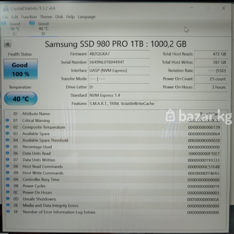 Хороший внешний бокс + SSD, копия (не оригинал) 980 Pro 1TB. Объем SSD не получилось подтвердить, так как при достижении записи примерно 100 ГБ, скорость резко падает. Бокс новый, был открыт только для установки и проверки SSD. SSD б.у. Характеристики: Поддерживаемые ОС: Windows, Linux, Mac. Интерфейс подключения накопителя: M.2 "M-key" Размер SSD NVMe M.2: 2280 Материал корпуса: металл (алюминий) Цвет: серый Поддерживаемая емкость: до 2 ТБ Скорость передачи данных: до 20 Гбит/с (только при наличии usb 3.2 gen 2 x2) Комплектация: бокс; комплект креплений; термопрокладка; кабель USB Type-C->Type-C + SSD Пожалуйста, прочитайте внимательно! Это не магазин. Я - частное лицо. Вещи у меня единичные. Нет гарантии, нет возврата, нет обмена. Времени на проверку не предоставляется. Проверка возможна при самовывозе или до отправки, после полной предоплаты (если доставка). Торг не уместен, все цены окончательные. По вопросам пишите на Ватсапп. Оставляйте именно текстовые сообщения, звонки и голосовые могут быть пропущены. Просьба, пишите с 9:00 до 21:00