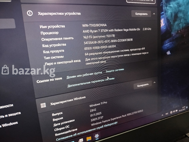 ASUS TUF GAMING Привозной из США🇺🇸 В Отличном состоянии Мощный игровой ноутбук для графики/монтажа/дизайна/3D работ/архитектуры/разные игры/фото-видео обработки/програмирования и подобного 🔹Процессор: Ryzen 7-3750H 2.3 Ghz + турбобуст до 4.0 ghz boost 8 логических ядер/потоков 🔹Видеокарта GTX 1650 - 4GB + Radeon RX Vega 10 🔹Озу 16 Gb 🔹Память для хранения скоростной m2 SSD 512 Gb 🔹Экран 15.6 дюйм FHD IPS (1920x1080) 120 герц 🔹Состояние б/у идеальное, полностью готов к работе 🔋Батарея в режиме интернет серфинга 3-4 часa и выше 🔦Подсветка клавиатуры 🔸Установлен свежий Windows 11+программы для офиса и работы 🔸Есть все необходимые разьемы: камера, встроенный микрофон. Wi-fi, bluetooth, usb 3х, hdmi. Встроенные динамики, Lan, type-s, разъём для наушников 🚗Бесплатная доставка по городу и всему Кыргызстану 🎁В подарок сумка+мышка 🔌Зарядка в комплекте 📋Гарантия 3 месяца ❌Обмена и рассрочки нет