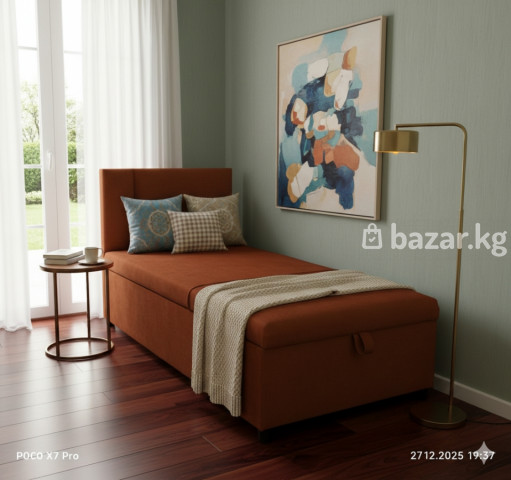 Одно спальный кровать есть в наличии и на заказ. По городу быстрая и бесплатная доставка. Длина - 2 метр. Ширина - 0,90 сантиметр.