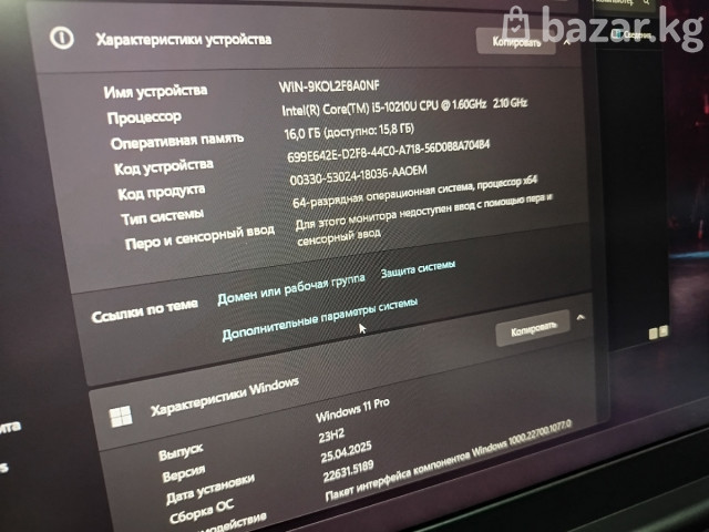 LENOVO THINKPAD E15 Привозной из США🇺🇸 Производительный ноутбук бизнес-класса для учебы/работы/офиса/програмирования/фото обработки/повседневные универсальные задачи 🔹Процессор:Intel Core i5-10210u 1.6 Ghz до 4.2 ghz boost 8 логических ядер/потоков 🔹Видеокарта Intel(R) UHD Graphics 🔹Озу 16 Gb 🔹Память для хранения SSD 512 Gb 🔹Экран 15.6 FHD (1920x1080) 🔹Состояние б/у отличное, как новое, полностью готов к работе 🔋Батарея в режиме интернет серфинга 4-5 часов и выше 🔦Подсветка клавиатуры 🌿Очень крепкая и надежная модель, металлический 🔌Быстрая зарядка Type-c 65 watt 🔸Установлен свежий Windows 11+программы для офиса и работы 🔸Есть все необходимые разьемы: камера, встроенный микрофон. Wi-fi, bluetooth, usb 3х, hdmi. Встроенные динамики, Lan, card rider, разъём для наушников 🚗Бесплатная доставка по городу и всему Кыргызстану 🎁В подарок сумка+мышка 🔌Зарядка в комплекте 📋Гарантия 3 месяца ❌Обмена и рассрочки нет