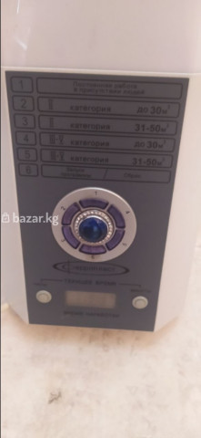 Рециркулятор-обеззараживатель воздуха «Аэропласт» - Назначение: обеззараживание воздуха в помещениях с возможностью работы в присутствии людей. - Тип: ультрафиолетовый бактерицидный рециркулятор закрытого типа. - Панель управления: поворотный селектор из 6 позиций и кнопка «Запуск программы»/«Сброс». - Режимы и категории помещений: 1) Постоянная работа в присутствии людей. 2) Категория II — помещения до 30 м³. 3) Категория II — помещения 31–50 м³. 4) Категория III–V — помещения до 30 м³. 5) Категория III–V — помещения 31–50 м³. 6) Сервисный/управляющий режим (запуск программ). - Индикация: дисплей «Текущее время» и «Время наработки», кнопки корректировки часов и минут. - Конструкция: напольный/приставной вертикальный корпус, фронтальная информационная панель. - Подходит для: офисов, кабинетов, приемных, салонов и других небольших помещений указанных категорий. Функции: непрерывная рециркуляция и обеззараживание воздуха, выбор программы по категории и объему помещения, отсчет наработки ламп и текущее время.