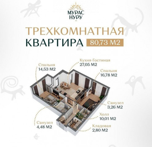 Продаётся 3-комнатная квартира в ЖК "Мурас Нуру"