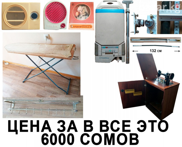 Продаю швейную ножную машинку, Гладильная доска, Вешалка настенная. Турник старый кривой, Две Радио Одна Электровибромассажер, Пылесос Продаю швейную ножную машинку Подольск В рабочем состояние Гладильная доска советских времён. В нормальном состоянии. Вешалка настенная, металл, СССР Турник старый кривой нужно лишь подбить чтобы выронит. Две Радио и Одна Электровибромассажер Бритва-массажер времен ссср. Новый! Харьковчанка-3 массажер электроприбор харьковчанка 3 электровибромассажер в родном футляре и коробке, с подробной инструкцией!- см фото! Все элементы на месте!- без утрат! Рабочий. В отличном состоянии!... Прибор для ухода за лицом, телом, ногтями. Электроприбор с функциями бритья, массажа лица, полировки ногтей. В употреблении не был. Поролон в одной насадке раскрошился от времени. Коробка с разрывами Радиоприемник от розетки состояние: На снимках. Применик Громкоговоритель абонентский КзылТу на радиоточку стационарный СССР Знак качества работает Абонентский громкоговоритель "Обь АГ-308" с начала 1990 года выпускал Новосибирский завод слаботочной аппаратуры. АГ ''Обь-308'' - последняя модель завода. Абонентский громкоговоритель предназначен для работы в радиотрансляционной сети с напряжением 30 вольт. Подводимая к громкоговорителю мощность - 0,15 Вт. Диапазон воспроизводимых звуковых частот - 200...6000 Гц. Среднее звуковое давление в диапазоне частот - 315...4000 Гц не менее 0,25 Па. Масса АГ - 800 гр работает Пылесос goldstar vacuum cleaner Mod. V-2012E 220V 1100W 50Hz Вес 4.5 кг Пылесборник мешок, емкостью. 3 л Длина сетевого шнура. 4.5 м Функции и возможности. индикатор заполнения пылесборника, автосматывание сетевого шнура, ножной переключатель вкл./выкл. на корпусе Сделана в Корее работает при покупке, пожалуйста, уточняйте наличие товара! Звоните по городскому номеру 31-01-22 Условия передачи Внимательно читайте объявление. Прежде чем купить- пишите, уточняйте. Цена окончательно 6 000 сом Без онлайн кошелька Товары к вам не везу. Без курьера Самовывоз Внимания: Товар продаем только напрямую вы должны посмотреть товар и оплачивать полную сумму находится в Бишкек центре города На sms не отвечаю. Обмен не предлагать. повторяю только городской номер Бишкек 31-01-22
