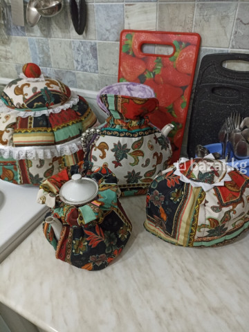 Текстильные ГРЕЛОЧКИ на чайники ,кастрюли ,казаны и др.Создают уют на вашей кухне. Сохраняет тепло и свежесть ваших приготовленных блюд на долгий период,что избавит от постоянного подогревания .А так же сделает более продолжительным и комфортным чаепитие в семейном кругу .Хороший подарок хозяйке когда отправляетесь в гости на чай.