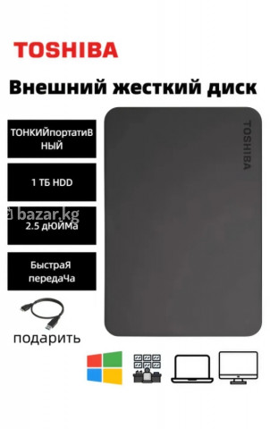 🔥В наличии, Акция, Супер цена🔥 🔥Переносной внешний жесткий диск Toshiba для хранения ваших данных/файлов итд (как флешка), подходит под любой телефон у кого есть type-c Подходит для 📱телефона android📱айфона📱планшета💻ноутбука🖥️компьютера🕹️playstation всех видов, xbox, просмотр фото-видео на tv, и аналогичных устройствах. Скорость передачи быстрая 3.0-3.2 Два вида Подключения Usb+type c 🟢Самая лучшая цена и качество на рынке! 🎟️512 Gb 3500 сом 🎟️1000 Gb 5500 сом 📱Тел 🚗Есть доставка по городу и в регионы 🎟️Оригинальная фирма Toshiba Подходит под все системы windows/macos/linux/android/телефоны/айфоны/планшеты 🎟️используется в качестве переносной флешки для сохранения ваших данных по типу фото/видео/приложений/важных документов и любых других файлов, можно использовать как дополнительную память для ноутбука/компьютера/телефона. внешний жесткий диск — это устройство, которое позволяет хранить большие объемы информации, а также легко переносить данные с одного устройства на другое. Внешний жесткий диск подключается к компьютеру, ноутбуку, ps всех видов, xbox, смартфону или телевизору через usb-порт или другой интерфейс и работает как дополнительный накопитель для разных файлов. #ноутбукибишкек #компьютерыбишкек #ноутбук #электроникабишкек #bishkek