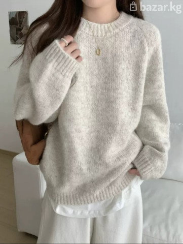 Стильный теплый вязаный свитер оверсайз цвета овсянки для женщин, осень-зима 2025, плюшевый, высококачественный, свободный пуловер