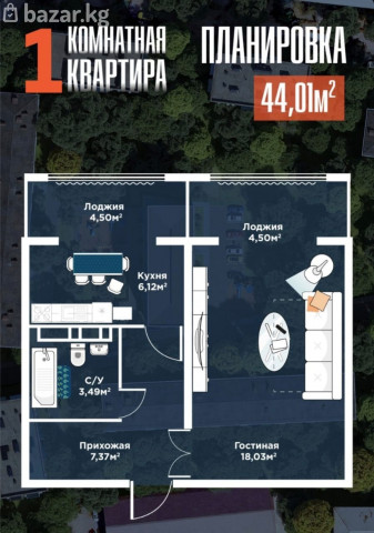 1 комнатная квартира в ПИШПЕК ПСО