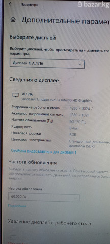 17" (43.2 см) Acer AL1716as 17" ЖК монитор Acer AL1716as (LCD, 1280x1024, D-Sub) ✔17" (43.2 см) ✔1280 x 1024 ✔VGA (15-пиновый коннектор D-sub) Диагональ ✔17" (43.2 см) Разрешение экрана ✔1280 x 1024 Тип LCD-матрицы TN Частота обновления кадров 60 Гц Подключение VGA. DVI,HDMI-отсутствует Шнур VGA и питания в комплекте Цена 2500Сом Без Шнуров 2000Сом 7-дней на проверку Доставка по городу 150/300Сом а так же в регионы №336