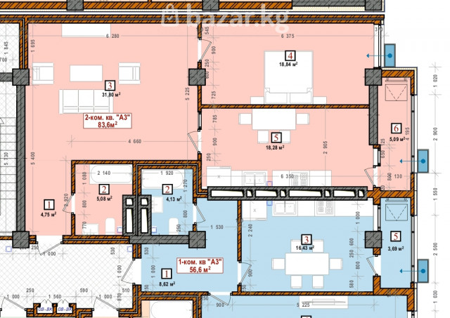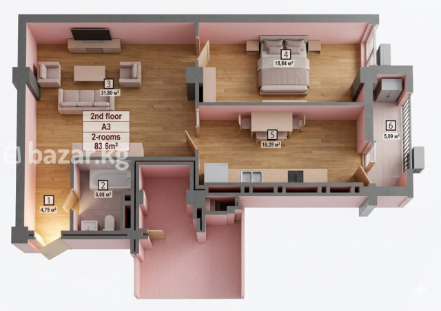 площадь 83,6 м²