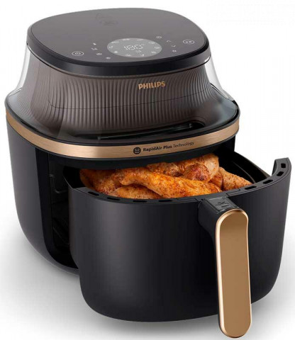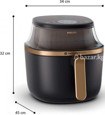 Аэрогриль Philips Ovi NA342 - это инновационный прибор, который готовит пищу без жира благодаря технологии Rapid Air Plus. Мощность 2000 Вт и объем 7,2 л позволяют легко жарить, готовить на гриле и запекать различные блюда. Электронный термостат и функция удержания тепла обеспечивают точное и равномерное приготовление. Использование мобильного приложения позволяет удобно управлять прибором и получать доступ к рецептам. Технические характеристики: Мощность (Вт): 2000 Температура (мин-макс): 40 - 200 ˚C Термостат: электронный Возможность мытья в посудомоечной машине: корзина Тип питания: Сеть Жарка: да Поджаривание: да Выпечка: да Варка: нет Гриль: да Повторный нагрев: да Жарка: нет Фондю: нет Контроль температуры: да Автоматические программы: да Функция поддержания тепла: да Термоциркуляция: да Дополнительные функции: мобильное приложение, жарка, гриль и запекание, смотровое окно, внутренняя подсветка, рецепты в приложении, сигнал окончания работы, технология Rapid Air Plus, таймер, светодиодный дисплей, цифровые часы Объем чаши (л): 7.2 Форма корзины: квадратная Цвет: черный Размеры: 33,3 x 30,35 x 45,3 см Вес (кг): 5,9 Размеры упаковки: 49 x 37 x 37 см Вес с упаковкой (кг): 1 Количество программ: 12 Минимальная температура (°C): 40 Максимальная температура (°C): 240