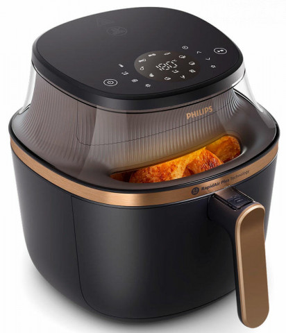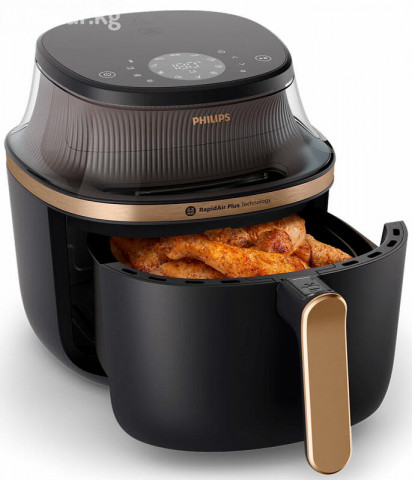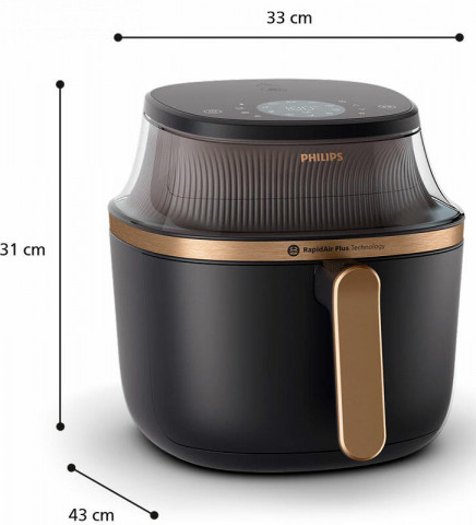 Общие характеристики Цвет товара черный/золотой Мощность 1700 Вт Тип аэрофритюрница Тип управления электронное Объем чаши 6.2 л Тип крышки съемная Длина сетевого шнура 1 м Размеры и вес Вес 5.6 кг Дополнительно Внутреннее покрытие чаши Антипригарное Макс. температура нагрева, °С 200 Мин. температура нагрева, °С 40 Название серии philips airfryer Наличие дисплея Да Основной материал корпуса Металл Программы приготовления Рыба, Картофель фри и закуски, Мясо, Пирог и пирожное, Пицца, Овощи Размеры, мм 436*324*303 Системы защиты Автовыключение, Защита от перегрева, Термоизолированный корпус Управление аэрогрилем Таймер, Установка температуры