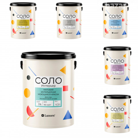 Лакокрасочные материалы общестроительного назначения. Предварительно, все поверхности должны быть сухими и очищенными от пыли, масляных пятен, старой краски и других материалов, которые могут помешать адгезии. Осыпающиеся и шлифованные поверхности грунтуются с помощью «СОЛО Праймер». Перед нанесением краску необходимо тщательно перемешать. Наносится с помощью валика, кисти, краскопульта. 1. Устранить сквозняк. 2. Оптимальная влажность воздуха в окрашенном помещении не менее 50%. 3. Обеспылить поверхность: влажная тряпка, влажная кисточка, промышленный пылесос. Не наносить на влажную поверхность. 4. Температура воздуха в помещении должна быть 15−20 градусов. 5. Рекомендуемый инструмент: нейлоновая или полиэстеровая кисть, мелко- или средне- ворсный велюровый валик. 6. Рекомендовано нанесение минимум двух слоев краски. Второй слой наносится не ранее, чем через 2 часа после первого слоя. Для ярких, насыщенных цветов может понадобиться 3−4 слоя краски.