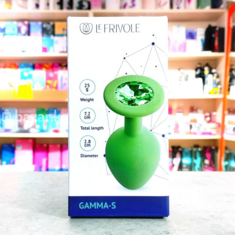РОСКОШЬ В ДЕТАЛЯХ. Пробка LE FRIVOLE GAMMA-S — это изысканный аксессуар, сочетающий комфортную форму и роскошный дизайн. Гладкий, эргономичный корпус из зеленого силикона обеспечивает приятное введение, а широкое основание украшено крупным, сияющим кристаллом для безопасного использования и сексуальной эстетики. Вес 25 грамм и компактные размеры (длина 7.2 см, диаметр 2.8 см) делают ее идеальной для игр и долговременного ношения.