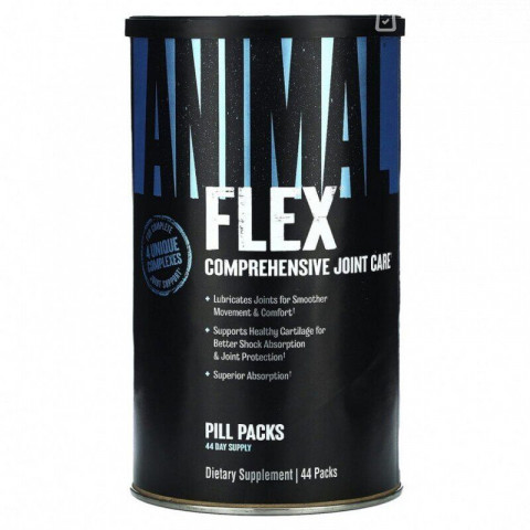 Animal Flex – это специальный продукт от всемирно известного производителя спортивного питания компании Universal Nutrition. Препарат предназначен для укрепления суставов и связок спортсмена и более того – их лечения! Основу Animal Flex составляют глюкозамин и хондроитин – важнейшие препараты для регенерации хрящевой и соединительной ткани. Они обеспечивают быстрое проникновение в глубь тканей питательных веществ, обладают обезболивающим эффектом. Так же Animal Flex увеличивает приток жидкости к суставам, что облегчает их работу, улучшает «смазку». Еще одно свойство препарата – сильный противовоспалительный эффект. Спортсмены, принимавшие Animal Flex, отмечают быстрый спад отечности тканей и скорое облегчение самочувствия. Но не обязательно начинать принимать Animal Flex, когда уже есть проблема со связками или суставами, вполне достаточно принимать его в половинных дозах и в качестве профилактики травм. Препарат обладает хорошим протекторным свойством, он предохраняет связки и хрящевые ткани от повреждений и обеспечивает их быструю регенерацию. Animal Flex является абсолютно натуральным продуктам, противопоказания к его приему не выявлены. Он так же разрешен к приему всемирным антидопинговым комитетом. Как выглядит и что из себя представляет Animal Flex Вы сможете увидеть на следующем видео: Возможно кому-то покажется, что состав Animal Flex «перегружен» специфическими веществами. Но эта добавка и не для новичков. Ее целевая аудитория – это серьезно занимающиеся спортсмены, имеющие за плечами определенный стаж и опыт и которым требуется конкретная помощь в защите суставов и связок. Ведь травмы хрящевой ткани примечательны тем, что получаются легко, а вот лечатся очень долго. Причем для восстановления после повреждений порой требуется полный покой и отсутствие нагрузки на сустав, что может откинуть спортсмена на много месяцев назад в тренировочном процессе. Поэтому с суставами как ничем иным справедливо правило: легче не допустить травму, чем вылечить. Поэтому прием Animal Flex как при первых признаках дискомфорта в суставах, так и в качестве профилактики – нормальная практика для серьезных спортсменов. Главное принимать в этот период пищу богатую белком. А, возможно, и специальные препараты с коллагеном, которые еще сильнее ускорять регенерацию хрящей и соединительной ткани связок. Рекомендации по применению Animal Flex Принимайте по одной порции в сутки. Несмотря на то, что принимать можно как натощак так и с едой – мы бы рекомендовали принимать его все же после еды. Ингредиенты Animal Flex Количество питательных веществ в одной порции (1 пакетик): Калории – 9 Всего жиров – 1 г Витамин С (аскорбиновая кислота) – 100 мг Витамин Е (ди-альфа токоферол) – 100 мг Цинк (цинк пиколинат) – 15 мг Селен (натрия селенит) – 70 мкг Марганец (марганца сульфат) – 1 мг Joint Construction Complex – 3000 мг Глюкозамин (HCl и сульфат KCI) Метилсульфонилметан (MSM) Хондроитин сульфат А (CSA) Хондроитин сульфат B (CSB) Joint Lubrication Complex – 1000 мг Льняное масло (50% линоленовая кислота) Цетил миристолеат специальная смесь (цетил миристолеат, цетил миристат, цетил пальмитат, цетил лаурат, цетил пальмитолеат, цетил олеат) Гиалуроновая кислота Joint Support Complex – 1000 мг Экстракт корня имбиря (gingerols, shogaols) Экстракт куркумы Boswellia (boswellic acid) Кверцетин Бромелаин Дополнительные ингредиенты: дикальций фосфат, сывороточный протеин, shark cartilage, желати