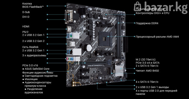 Мат. плата ASUS PRIME B450M-K II (RTL) AM4 <B450> PCI-E Dsub+DVI+HDMI GbLAN SATA MicroATX 2DDR4 Socket AM4 ✔AMD B450 ✔1 слот 16x PCI-E ✔HDMI, DVI-D, 15-пиновый коннектор D-Sub ✔1 Гбит / с ✔RAID-контроллер ✔MicroATX ✔2x DDR4 ✔1 разъем M Key SATA, PCI-E 2242, 2260, 2280 ✔LED-трассировка зоны аудиоподсистемы Процессор AMD Ryzen 5 3600 AM4 Количество ядер-6. Количество потоков-12. 3600-4200 МГц Цена Комплекта 13900 Сом Материнская плата НОВАЯ процессор Б.У По отдельности Мат.Плата 7900 Сом Процессор 6000 Сом Возможна проверка и установка на месте Возможен обмен ✅Доставка по городу 150-300сом а так же в регионы ✅Для быстрого заказа ответа пишите Whatsapp ✅График работы 10.00 до 22.00 Без выходных +996550917124 +996700474124 www.kaufmannservices.pro №367