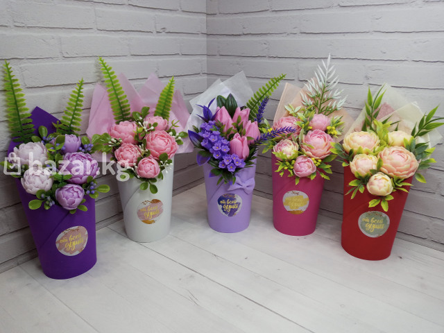 Цветы долго стоят и хранятся без холодильника. Мыло не красит руки и хорошо пенится, изготовлено из сертифицированной мыльной основы с глицерином, благодаря которому кожа не сохнет. Количество ограничено,