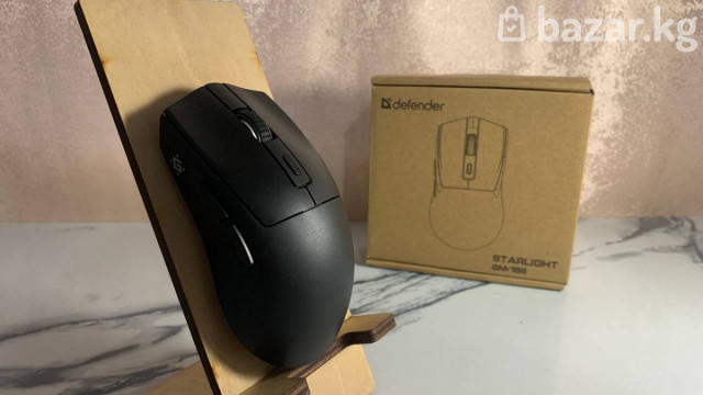 Компьютерная мышь Defender Starlight (модель GM-186) — это ультралегкая игровая мышь с возможностью проводного и беспроводного подключения (по Bluetooth и радиоканалу 2.4 ГГц). Она оснащена оптическим сенсором с разрешением до 1600 dpi и RGB-подсветкой.  Характеристики Тип подключения: Комбинированный — проводной, беспроводной по радиоканалу 2.4 ГГц и беспроводной по Bluetooth. Сенсор: Оптический, с максимальным разрешением 1600 dpi. Кнопки: 6 кнопок. Подсветка: RGB-подсветка с шестью режимами работы. Аккумулятор: Встроенный аккумулятор емкостью 300 мАч. Вес: Ультралегкий вес — около 70 грамм. Дополнительно: Тефлоновые ножки для легкого скольжения, симметричная форма, подходит для обеих рук, встроенная память.