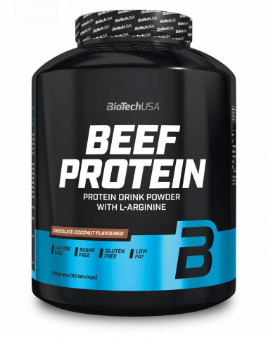 О продукте BioTech Beef Protein Пищевая добавка BioTech Beef Protein представляет собой гидролизат из протеина натуральной говядины и производится из высококачественного белка высокого уровня очистки без содержания холестерина, лактозы или сои. Пептидная формула продукта получается из говядины высочайшего качества с применением особой технологии многоуровневого последовательного гидролиза. В состав продукта входит уникальная смесь аминокислот (в том числе и незаменимых с разветвлённой цепочкой) и пептидов, которые добываются из предварительно расщеплённого белка. Говяжий протеин является отличным источником белка благодаря тому, что он легче усваивается организмом, нежели говядина в естественном виде, не содержит в себе нежелательных компонентов, таких как жиры и холестерин, впитывается в течение одного часа и обладает высоким уровнем усвоения азота, а также белка. Содержащийся в продукте белок обеспечивает ускоренный рост чистой мышечной массы и её поддержание на достигнутом уровне. Комплекс из витаминов и полезных минеральных веществ повышает качество усвоения действующего состава продукта. Витамин В6 нормализует процессы метаболизма белка и гликогена в организме, а также снижает симптомы усталости и повышает общую выносливость, что делает продукт идеальным дополнением к палео-диете. Повышенная концентрация аминокислот с разветвлённой цепочкой BCAA способствует поддержанию положительного азотного баланса в организме, повышает эффективность синтеза белка, снижает проявление катаболизма, а также значительно повышает производительность в процессе тренировок и снижает мышечную усталость. Почитав отзывы о BioTech Beef Protein, вы сможете получить дополнительную информацию о продукте и его индивидуальном воздействии на организм спортсмена со слов тех, кто уже использует его. Cостав Beef Protein BioTech USA (1 порция = 1 мерная ложка (30 гр)): Калории 111 ккал Жир 0,45 г из которых насыщенные 0,33 г Натрий 570 мг Углеводы 1,5 г Сахар 0,03 г Белки 25,2 г Бета-каротин 18 мкг Витамин -C 28,5 мг Никотиновая кислота 6,3 мг Витамин Е 1,8 мг Витамин B6 0,54 мг Витамин В12 1,5 мкг Витамин B1 0,36 мг Витамин В2 0,42 мг Фолиевая кислота 96 мкг Биотин 24 мкг Аминокислотный комплекс L-аргинин 50 мг L-Глютамин 50 мг L-лейцин 25 мг L-изолейцин 12,5 мг L-валин 12,5 мг Инулин 20 мг Bromelian Фермент 20 мг ВкусКлубника / Ваниль / Шоколад