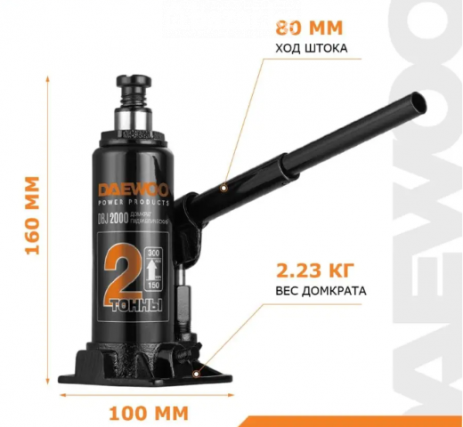 Домкрат гидравлический DBJ2000 2т бутылочный