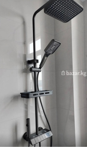 Душевая система с верхним и ручным душем, термостатическим смесителем и полкой-органайзером