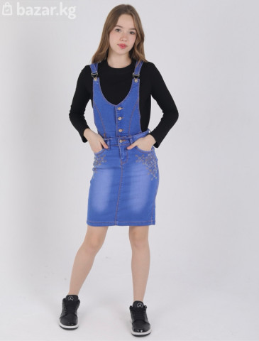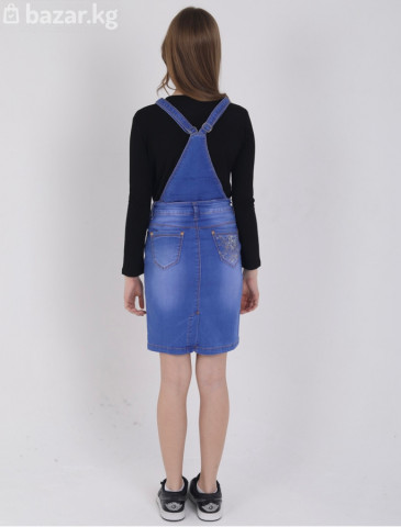 Джинсовый сарафан на лямках для девочки/подростка. - Прилегающий силуэт, длина до колена - Классический голубой деним с легкими потертостями - Передняя планка с декоративными пуговицами - Регулируемые плечевые лямки на металлических пряжках; перекрест на спине - Высокая посадка, притачной пояс с шлевками под ремень - Пять карманов: два спереди, монетный, два накладных сзади - Нежная вышивка/аппликация у боковых карманов - Задний разрез для удобства шага - Контрастная фирменная отстрочка Удобный и универсальный вариант на каждый день: сочетается с футболками, водолазками и свитшотами, подходит к кедам и ботинкам. Материал плотный, держит форму, фурнитура металлическая. Цвет на фото может незначительно отличаться из‑за настроек экрана. Цена до скидки 2500 сом, цена со скидкой 2000 сом