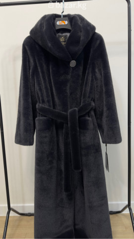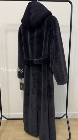 Экошуба премиум качества!!! 👍🏻🔥🔥🔥 Шуба женская с капюшоном, темно‑графитового цвета, длина миди/макси. Крой прямой с легким приталиванием за счет пояса из того же меха. Застежка — одна крупная пуговица сверху и скрытая внутренняя планка; пояс продет через шлевки. Два объемных накладных кармана по бокам. Рукав полный, комфортной ширины. Капюшон мягкий, объемный, красиво драпируется и надежно защищает от ветра. Мех плотный, гладкий, с благородным матовым блеском; подклад выполнен в тон. Универсальная модель: подходит к повседневным и вечерним образам, визуально вытягивает силуэт и подчеркивает талию. Очень стройнит 👍🏻🔥🔥🔥 Цвет легко сочетается с обувью и аксессуарами в черной, серой, белой и насыщенно‑цветной гамме. Шуба очень лёгкая, но удивительно тёплая.