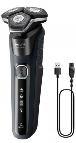 Philips Series 5000 обеспечивает эффективное бритье, срезая ещё больше волосков за одно движение*, даже трёхдневную щетину. Благодаря передовой технологии SkinIQ бритва распознаёт густоту волос и подстраивается под неё, обеспечивая дополнительный комфорт для кожи. Технические характеристики Аксессуары Подставка для зарядки Да Стайлер для бороды Встроенный выдвижной триммер Да Дорожный футляр В комплект входит кабель USB-A Адаптер питания в комплект не входит. Зарядка -1 час полной зарядки -5-минутная быстрая зарядка Автоматическое напряжение 5 В Тип батареи Литий-ионный Напряжение 5 В время выполнения 60 минут Резервное питание 0,04 Вт Максимальное энергопотребление 9 Вт Дизайн Цвет Глубокий черный Ручка Резиновая рукоятка Бритвенные головки Угловой Эффективность бритья -360 D Гибкие головки Бритвенная система -Лезвия SteelPrecision -Датчик Power Adapt Зарядка Зарядка через USB-A Cветодиодный дисплей -Индикатор уровня заряда батареи -Индикатор управления движением -Дорожный замок Влажное и сухое использование Чистка -Открытие одним касанием -Полностью моющийся