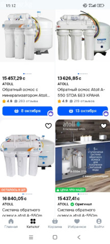 В два раза ниже себестоимости ( максимально большой бак 18л, дорогой и качественный минерализатор и комплектующие+ кран с подсветкой) Чистая минерализованная вода, гарантия 10 лет Срочная распродажа Цена в рублях это цены Озона , Валберис и завода производителя Обратный осмос -Atoll 550 STDA-10000c(19500₽) Обратный осмос-Atoll 575 STDA-10500c(20250₽) Обратный осмос-Pentek 550 STD-14500c(19850₽) Обратный осмос-Pentek 575 STD-15000c(28250₽) КАРТРИДЖИ. Мембрана Atoll-50 -1000c Мембрана Atoll-75-1200c Мембрана FilmTec 50-1500c Мембрана FilmTec 75-2000c Постфильтр Atoll-600c Минерализатор Atoll-700c GAC pentair- 700c GAC ATOLL--550c GAC патриот-400с Механика Pentek P5, P1-200c, Механика ATOLL- P5, P1-150c, Кран ATOLL- 8883CP-1500c