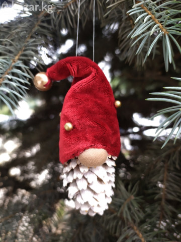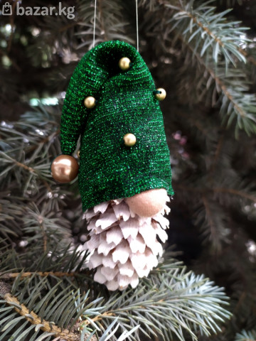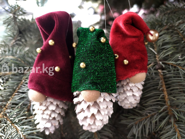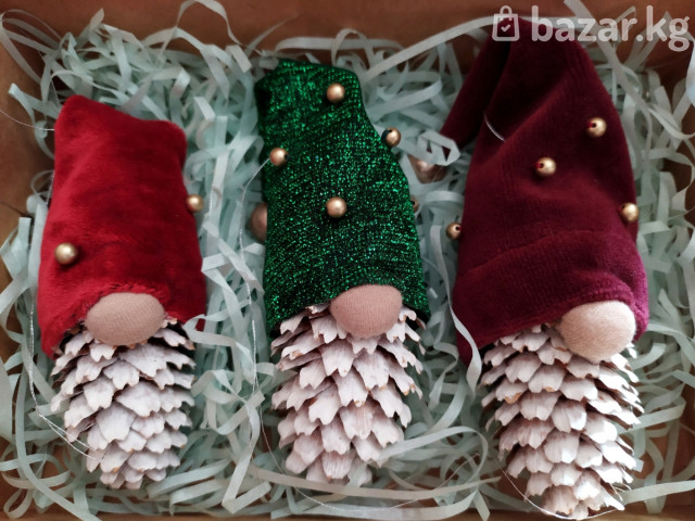 Продается набор ёлочных украшений. В наборе три гномика, созданных из натуральных шишек. В работе использованы разные ткани, бусины, синтепух, акварельные краски. Гномики упакованы в праздничную коробку. В наличии только один набор.
