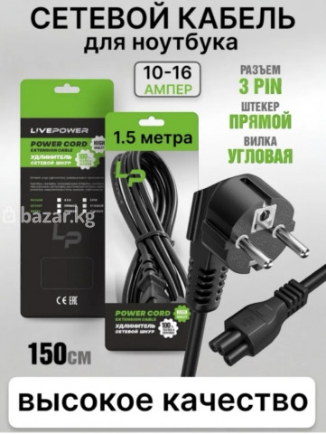 ⚡Кабель питания для зарядных устройств ноутбуков/ шнур питания ⚡Прочная изоляция, износостойкое исполнение ⚡Качественный и прочный ⚡Совместим под разные бренды ⚡Acer/ Asus/ Dell/ Lenovo/ Hp/ Sony/ Dell/Toshiba/ Msi/ Xiaomi/ Pacard Bell/ Samsung и так далее 🟣Цена 200 сом 📱Тел 0504707703 🚚Есть доставка по городу и в регионы