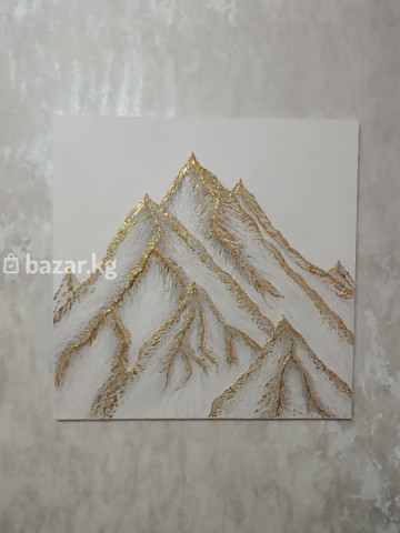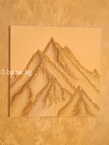 Интерьерная картина "Золотые вершины" Ручная работа Размер 75×75см. Материалы: артборд, текстурная паста, поталь, акрил. В наличии.