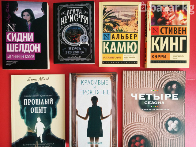 Художественная литература разных жанров. В наличии: Счастливая смерть - Альбер Камю. Цена: 200 сом. Кэрри - Стивен Кинг. Цена: 200 сом. Мельницы Богов - Сидни Шелдон. Цена: 150 сом. Ночь без конца - Агата Кристи. Цена: 200 сом. Красивые и Проклятые - Кэти Алендер. (Новая) Цена: 400 сом. Прошлый Опыт - Денис Авдеев. (Новая) Цена: 200 сом. Четыре Сезона. Книга рецептов. (Новая) Цена: 300 сом. Цена за все: 1500 сом.