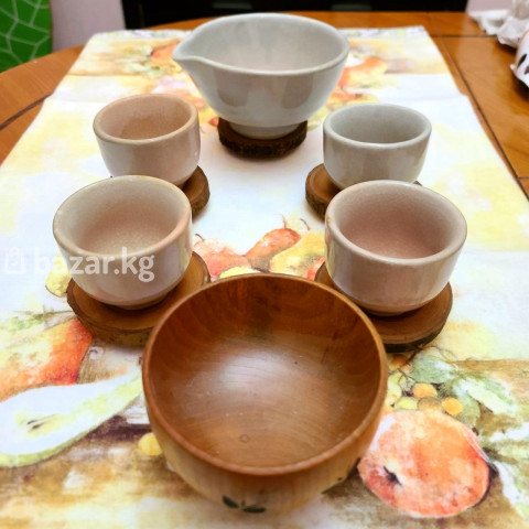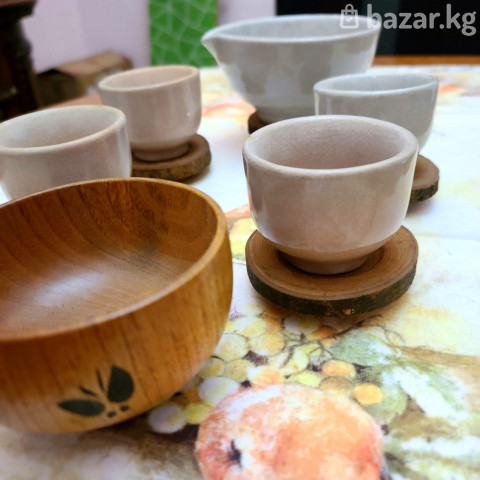 Чайный набор ручной работы изготовленный буддийскими монахами в провинции Кёнгидо (Корея), из специальной глины меняющей цвет при взаимодействии с горячей водой.