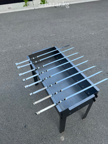 Мангал разборный из металла НОВЫЙ - Материал: сталь с антикоррозийным покрытием - Конструкция сборная: стенки вставляются в пазы, устойчивые съёмные ножки - Отверстия по бокам для равномерной тяги и быстрого розжига - Две зоны/уровня для углей: удобно регулировать жар - Подходит для 6 шампуров (стандартные пазы под шампуры, держатся ровно) - Компактно разбирается для перевозки и хранения, помещается в багажник - Использование: шашлык, овощи, решётка-гриль, казан на подставке - Рекомендуемая топливная база: древесный уголь или дрова твёрдых пород Идеален для пикников, дачи и выездов на природу. Простая сборка без инструментов, устойчиво стоит на любой ровной поверхности. Внимание мангалы без шампуров ⛔️ Шампуры отдельно цена за один шампур -70сом