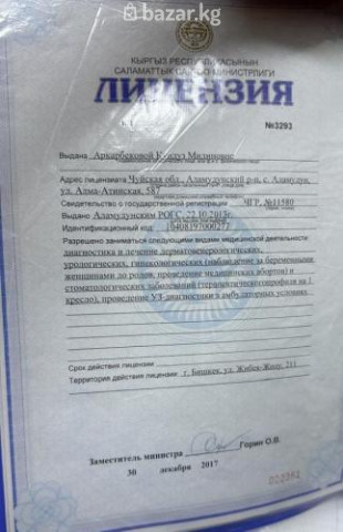 МЕДИЦИНСКИЙ ЦЕНТР " АЯР - МЕД " Наши врачи Наши врачи по адресу: ул. Жибек Жолу , 211 Тенизбаева Чынара Качкыновна - врач высшей категории - УЗД Зайырбек Кулу Талгат - Стоматолог Санира Келдибек кызы - Гинеколог Мээрим - Массажист Наши врачи по адресу: ул. Аалы Токомбаева, 33а Жусубалиева Айгул Кариевна - врач высшей категории - Акушер - Гинеколог Аркарбекова Кундуз Мидиновна - врач со стажем 35 лет - Акушер - Гинеколог, УЗИ внутренних органов, УЗД, Эндокринолог Айсаракунова Жыпар Асанкадыровна - Дерматовенеролог, Трихолог Наши услуги: - Акушер - гинеколог - Нейросонография, Скрининг, Допплер плода, УЗИ внутренних органов ( щитовидной железы, молочной железы ) - Видеокольпоскопия - Планирование и ведение беремености - Безопасные методы прерывания беременности - Лечение бесплодия, воспалительных заболеваний - Прижигание эрозий шейки матки - Лазерное омоложение (интимная зона) - Пластика интим зоны (Лабиопластика, вагинапластика, восстановление девственности) - Уролог - аппаратный уромассаж - Эндокринолог - Невропатолог - Кардиолог - ЭКГ - Дерматовенеролог, трихолог - Дерматокосметолог - лазерное удаление папиллом, кандиллом, полипы, бородавки - Стоматологи - все терапевтические и хирургические процедуры, лечение, пломбирование, зубопротезирование, брекет системы - Массаж - Дневной стационар (уколы, капельницы) - Лаборатория - все виды анализов Режим работы: с 8:00 до 18:00 ежедневно Тел: +996 990 307 703 W/a +996 708 991 118 W/a +996 702 332 008 Инстаграм: ayarmed.k https://www.instagra...NlZDc0MzIxNw== Сайт: ayarmedkg.com Эл. почта: a.med.k2015@gmail.com Адрес: Мед центр Аяр Мед г.Бишкек, пр. Жибек-Жолу, 211 Филиал: ул. Аалы Токомбаева, 33а