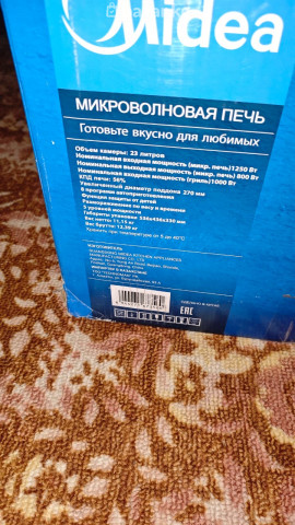 Микроволновая печь Midea, компактная и стильная. Характеристики и удобства: - Электронное управление с LED‑дисплеем и таймером. - Кнопочные программы + поворотный регулятор мощности/времени. - Функции: разогрев, разморозка, быстрый старт. - Дверца с большим затемнённым стеклом и удобной ручкой. - Классический корпус: чёрная фронтальная панель и белая боковая часть. - Подставочные ножки для устойчивости на столешнице. - Звуковая индикация окончания работы. Идеально для быстрого разогрева блюд, напитков и аккуратной разморозки продуктов. Подойдёт для кухни с ограниченным пространством благодаря компактным габаритам. Читайте внимательно! Брали как подарок на день рождения! Но, не угадали с размером. Микроволновкой не пользовались. Она новая! Брали в Табылге за 9300. Так как уже открывали, то все равно считается б/у 23 литра!!!