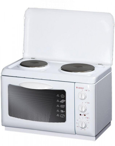 Технические характеристики Габариты (ВхШхГ) 40х55х37 см Цвет: белый Номинальное напряжение: 220 В Номинальная потребляемая мощность: 2,2 кВт Полезный объем духовки: 18 л Масса: 19,5 кг Параметры стола Количество электроконфорок: 2 Мощность электроконфорок: Большой: 1,2 кВт Малой: 1 кВт Параметры духовки Электродуховка Верхний ТЭН: 0,4 кВт Нижний ТЭН: 0,6 кВт ТЭН-гриль: 0,8 кВт Диапазон температур работы духовки: 50-260 С Особенности Термостат Двойное стекло дверцы духовки Регулировочные ножки Крышка стола металлическая Термостойкое эмалированное покрытие корпуса Термостойкое эмалированное покрытие стола