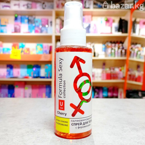 Спрей с феромонами для тела парфюмированный Formula Sexy Cherry U104 100 мл. Спрей с феромонами для тела парфюмированный. Верхние ноты: горький миндаль, черная вишня, cherry liqueur. Средние ноты: вишня, слива, турецкая роза, жасмин самбак. Базовые ноты: бобы тонка, ваниль, корица, перуанский бальзам, бензоин, сандал, гвоздика (пряность), кедр, пачули, ветивер.