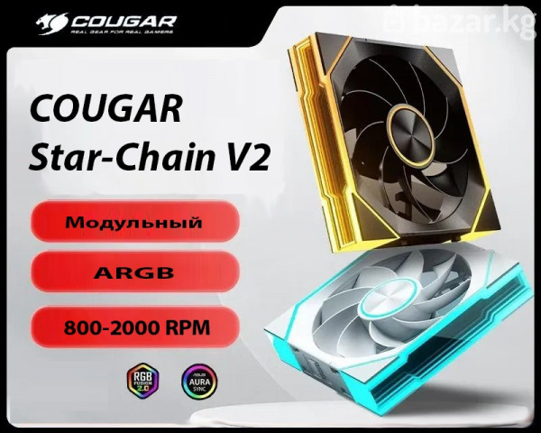 Модульный вентилятор Cougar Starlink V2 с бесшумной подсветкой ARGB и стандартными лопастями Модель: Вентилятор Star Chain V2 Building Block Способ подключения: Беспроводное соединение Размеры: 123,8 x 120 x 25 мм Скорость вращения вентилятора: 800–2000 об/мин ±10% Расход воздуха Расход передних лопастей: 52,48 куб. фут/мин Давление воздуха Расход передних лопастей: 2,05 мм вод. ст. Уровень шума вентилятора Расход передних лопастей: 28,79 дБА Потребляемая мощность 1,8 Вт (вентилятор) 4,35 Вт (светодиод) Номинальное напряжение 12 В постоянного тока (вентилятор) / 5 В постоянного тока (светодиод) Номинальный ток 0,2 А (вентилятор) / 1,1 А (светодиод) Тип подшипника: Гидравлический подшипник Длина кабеля 500+50 мм (Вентилятор) 500+50 мм (ARGB) Интерфейс управления: 4-контактный ШИМ / 3-контактный ARGB