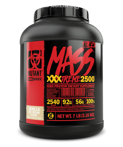 Спортивная добавка Mutant Mass XXXTREME 2500 – это не просто гейнер, это настоящий шедевр спортивного питания. Он позволяет за короткие сроки нарастить мышечную массу без вреда для здоровья. Продукт обогащен всеми необходимыми полезными веществами, благодаря чему он снимает болевые ощущения, повышает выносливость, восстанавливает силы и улучшает силовые показатели. В чём польза приёма гейнера Продукт специально разработан для тех людей, кто ведет активный образ жизни и у кого быстрый обмен веществ. Продукт содержит все необходимые аминокислоты разветвленных цепочек, глютамин и другие вещества, которые необходимые для укрепления мышц. В одной порции содержится более 1200 калорий, что позволяет нарастить мышечную массу в рекордно короткие сроки. Принимать гейнер можно до или после тренировки. Преимущества: 1.Ускоряет набор массы. 2.Оптимальное соотношение белка и углеводов. 3.Полностью усваивается. 4.Высокая калорийность. 5.Выгодная цена. Mutant Mass XXXtreme 2500: Белково-углеводный комплекс для набора массы; Натуральные ингредиенты в основе; 1070 калорий в одной порции; 30 г белка, из них – 5 г глютамина, 3,1 г лейцина; 231 г углеводов и 2,5 г полезных жиров; Белковая основа – сывороточный протеин; Углеводная основа – мальтодекстрин, крахмал восковой кукурузы, ячменный крахмал, порошок сладкого картофеля, плющенная овсянка; Высокое содержание BCAA, глютамина; Восполняет запасы гликогена; Обеспечивает энергией; Способствует росту и восстановлению мышц; Сокращает период восстановления. ВкусКлубника / Ваниль / Шоколад