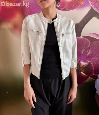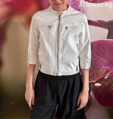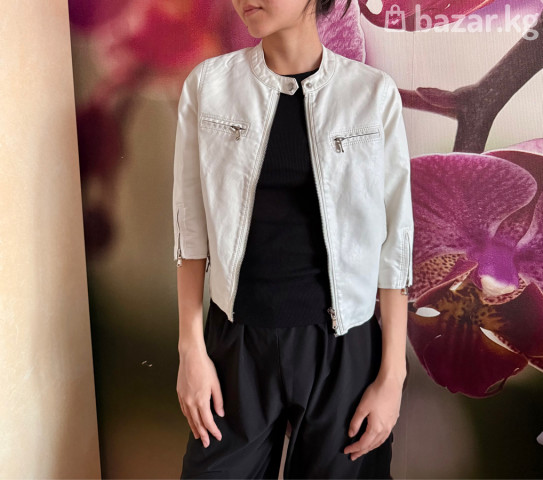 Кожаная кроп-куртка размера S белого цвета, носили всего один раз, в отличном состоянии, Китай, очень стильная